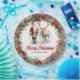 Plaques de Noël classiques à l'aquarelle éternelle illustration à Père Noël avec rennes embrassant la couronne de Noël classique avec des baies rouges et verdure. Personnalisez facilement le texte ou laissez-le vide.