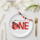 Aquarelle Ladybug sur blanc - Oh Quel plaisir d'être un 1er anniversaire Plaques de papier fête rouge, rose, noir, blanc