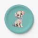 Assiettes En Carton Aquarelle Main Tirée Puppy Avec Poudre Bleu Bow