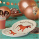 Un chien d'aquarelle mignonne sur des assiettes en papier. Couleur arrière - plan personnalisée. Parfait pour la fête d'anniversaire de garçon. Facile d'ajouter votre texte et votre nom.