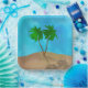 Assiettes En Carton Aquarelle Palm Tree Beach Scene Collage