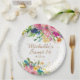 Elégante parties scintillant rose, bleu et jaune aquarelle fleurie et or sur blanc Sweet 16 anniversaire plaque papier de fête personnalisée avec le nom de l'invitée d'honneur et sa date de fête. Contactez-moi pour obtenir de l'aide sur vos personnalisations ou pour demander l'appariement ou la coordination des produits Zazzle pour votre événement.