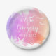 Plat en papier mariage d'été abstrait rose moderne avec étoiles de mer et mouettes plage avec une peinture à l'aquarelle peinte à la main avec texture dans les tons rose, violet et corail, deux étoiles de mer et mouettes en blanc et texte en blanc. Cet élégant design décontracté mariage est un modèle entièrement personnalisable, idéal pour votre mariage de printemps ou d'été, douche nuptiale, réception, fiançailles ou fête d'anniversaire.