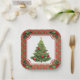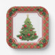 Une belle plaque en papier de Noël ornée d'un sapin de Noël coloré avec une bordure en plaid rouge de Noël et des accents saints. Idéal pour des tables de restaurant de vacances ou des repas de salon de séjour.