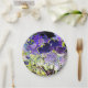 Un design artistique assez abstrait de feuilles d'arbres en violet et vert.