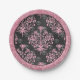 Assiettes En Carton Arlequin rose et noir et Damas