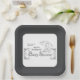 Pretty and elegant paper plates for your upcoming baby shower feature an illustration of a teddy bear sitting under an umbrella with bold font for the word "Baby Shower" surrounded by a lovely frame with easy to update text.