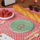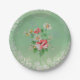Assiettes En Carton Assez vert avec les plats roses de papier peint