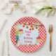 Cet automne Apple Picking Paper Plate serait une belle décoration pour votre table de fête et dispose d'un garçon blonde sur une échelle et de cueillir des pommes d'un arbre sur un cadre orné. Les couleurs du texte, de la bordure du cadre et du cadre arrière - plan peuvent toutes être modifiées selon votre style. D'autres objets correspondants (Invitations, ballons, etc.) peuvent être achetés à mon magasin Invitations pour créer une fête d'anniversaire thématique. Oeuvre de PrettyGrafik (89)