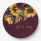 Automne été mariage Bourgogne et tournesol jaune verdure bordeaux arrière - plan cadre or boho rustique floral mariage modèle assiettes personnalisées mariage vaisselle