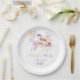 Jolies assiettes en papier baby shower avec un adorable oiseau et fleurs violettes et jaunes. Parfait pour un baby shower de printemps ou d'été. Les mots peuvent être changés en fonction de vos propres détails ou exigences