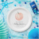 Ces mignonnes plaques de papier baby shower, neutres selon le sexe, présentent une aquarelle orange pastel d'un citrouille, un "baby shower" dans un script gris élégant, et le nom et la date de la douche de la future mère dans un mélange de typographie moderne et manuscrite.