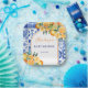 Élégantes plaques en papier baby shower aquarellées à thème agrumes. L'aménagement comprend des illustrations d'aquarelle d'oranges, de clémentines, de citrons et de feuilles verts, contre un charmant arrière - plan carrelé pour une ambiance méditerranéenne estivale. Utilisez les outils de conception pour customiser le texte, les polices et la couleur.