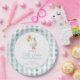 La plaque en papier baby shower de ce mignon garçon "oie stupide" comporte une oie avec un casquette de fête et des ballons sur un arrière - plan bleu en vichy plaid. Personnalisez-le selon vos besoins. Vous pouvez trouver des produits correspondants dans mon magasin.