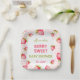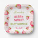 Cute, aquarelle, boho fraise douce bébé fille douche de la fête de décoration assiettes. Tous les éléments sont choisis pour apporter de bonnes vibrations, avec un mélange de couleurs estivales : rose chaud, rose pâle et vert d'herbe. L'arrière - plan charmant avec des points, ainsi que l'écriture moderne et élégante manuscrite, rendent ce design parfait pour les fêtes de baby shower d'été.