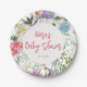 Plaques de papier baby shower à motifs floraux brillants avec des fleurs colorées d'aquarelle.
