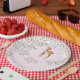 Ce design fantaisiste aux tons pastel est composé de cerfs d'aquarelle douce et de vignes à la charpente délicate. Parfait pour les fêtes spéciales de votre bébé.