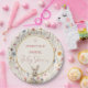 Ajoutez un peu de sérieux à votre table ! Cette assiette de baby shower fleurit de fleurs douces et présente un petit lapin timide prêt à faire la fête. Conçu pour les amateurs de bois et les rêveurs de livres de contes, il est parfait pour les snacks, les gâteaux et "aww" tout autour !