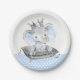 Boy éléphant plaques en papier baby shower avec mignon petit garçon prince éléphant sur un bébé bleu et gris pois arrière - plan. Vous pouvez ajouter du texte pour personnaliser ces assiettes en papier baby shower d'éléphant doux garçon. Vous pouvez également ajouter une couleur arrière - plan à ces plaques de baby shower prince d'éléphant.