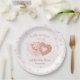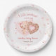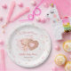 Un peu d'amour est en route ! Apportez la sensation la plus adorable à votre baby shower avec ces assiettes en papier peint sur le thème de l'ours-bébé dans le rose et le beige doux. Doté d'une adorable petite fille d'ours portant un biscuit en forme de coeur doux, de petits coeurs et de nuages. Parfait pour votre baby shower de Février autour de la journée Valentines. Personnalisez facilement le texte. - Kate Eden Art