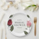 Une assiette en papier pour une baby shower chic et moderne représentant deux belles roses posées sur un panneau arrière teinté qui contient les détails de votre baby shower dans un texte élégant. Conçu par Thisisnotme©