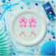 Plaques de baby showers douces avec jumeaux de filles et ballons roses.