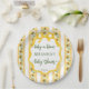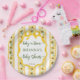 Tournesol bébé en fleur baby shower monogrammed plaques modèle, jaune rétro rayures tournesol bordé arc ondulé baby shower personnalisées plaques de papier, élégante vintage bordé de tournesol plaque de papier baby shower, vert et jaune tournesol baby shower de table personnalisée