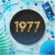 Ballons en feuille d'or pour 1977 année de naissance sur dégradé noir et bleu arrière - plan avec étoiles de nuit pour la fête d'anniversaire.