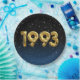 Ballons d'anniversaire en mylar or pour 1993 sur dégradé noir et bleu arrière - plan avec étoiles de nuit.