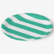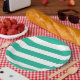 De larges bandes de transats vert et blanc en gras sur des articles d'accueil évoquent les souvenirs du bord de mer.