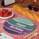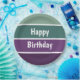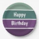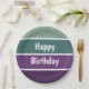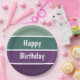 Un motif à rayures horizontales vert et violet et le texte : Joyeux anniversaire. Vous pouvez cliquer sur personnaliser et modifier le texte. Écrivez deux mots en une seule ligne.