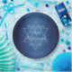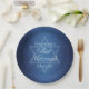 De belles nuances profondes de bleu foncé créent une texture comme de l'eau sur ces assiettes de fête Bat mitzvah formelles personnalisées. Élégant script blanc minimaliste sur la décoration avec le nom de votre fille sur la subtile étoile de David pour une célébration juive.