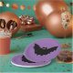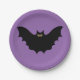 Papier Plaque imprimée avec Black Bat image design par TheFabricSeal à Zazzle est une mignonne et simple chauve-souris noire avec les couleurs arrière - plans d'Halloween Orange et Halloween Violet illustration dessin silhouette style avec peekaboo peering kaki vert et citrouille orange yeux à la recherche d'amis et proies et une nuit d'Halloween sombre cool d'aventure, goblins, ghoulins s et fantômes.