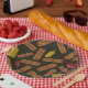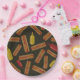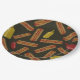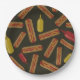 Hot dog avec moutarde et ketchup assiettes motifs, parfait pour une soirée barbecue.