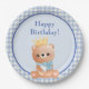 Assiettes En Carton Bear Cub Blue Checker Joyeux anniversaire