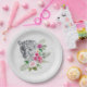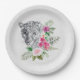 Plaques en papier avec une belle illustration représentant un portrait léopard gris, noir et blanc. Ce bel animal est entouré d'un bouquet de fleurs tropicales. Élégant, exotique et joli.