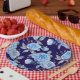 Assiettes En Carton Beaux roses bleus, arrière - plan bleu marine,