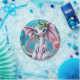 Joli Dragon de Bébé souriant avec Plaques de Papier Fleurs, ce design présente un joli dragon de bébé souriant avec des fleurs dans les couleurs rose et bleu.