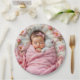 Assiettes En Carton Bébé rose floral fille et chaton blanc