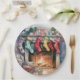 Un joli dessin d'art abstrait coloré aux couleurs assorties de bas rouges, bleus et jaunes accrochés au feu le soir de Noël Ces assiettes et serviettes en papier feront un joli décor à votre table pour les repas de Noël ou de vacances.