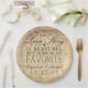 Ces assiettes en papier mariage rustique présentent un arrière - plan en bois de grange avec la phrase "Chaque histoire d'amour est belle, mais la nôtre est mon préféré". Personnalisez ces assiettes pour une touche unique avec vos noms et votre date mariage. Complétez le look avec nos serviettes en papier assorties :