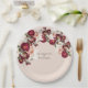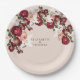 Jolies assiettes en papier pour votre mariage Victorian Rose Garden. De belles roses rouges, des pivoines roses et des Lys blancs sur un arrière - plan rose vif.