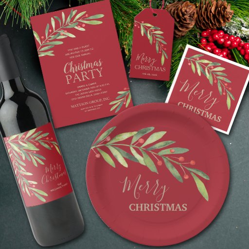 Les plaques en papier de 2 tailles présentent une verdure élégante et des baies avec Joyeux Noël en lettrage chic sur n'importe quel arrière - plan de couleur (nous montrons noir.) CORRESPONDRE des articles dans notre magasin.