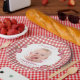 Fraise ! Mélange fraise thème fixations de premier anniversaire, est idéal pour une fille qui aime les baies sucrées. en vichy arrière - plan pour un look "à la ferme" qui n'est rien pour une fête de tartes, de desserts sucrés aux baies, de fruits frais et tout ce qui va avec. Fruits d'aquarelle et de minuscules accents cardiaques. Fraise rose et blanche.