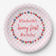 Soirée de premier anniversaire de baies sucrées avec fraises et bleuets sur un arrière - plan en damier de style pique-nique rose