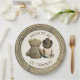 Cute brun burlap cowboy bébé garçon baby shower plaques en papier avec arrière - plan de corde.