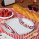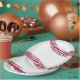 Gros plan extrême d'un baseball blanc avec couture rouge