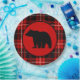 Red and black plaid with a black bear cozy, cabin design.