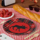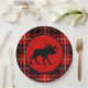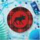 Plaid rouge et noir avec un design cabine et cosy d'orignal noir.