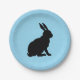Assiettes En Carton Black Silhouette assise Rabbit sur bleu clair
